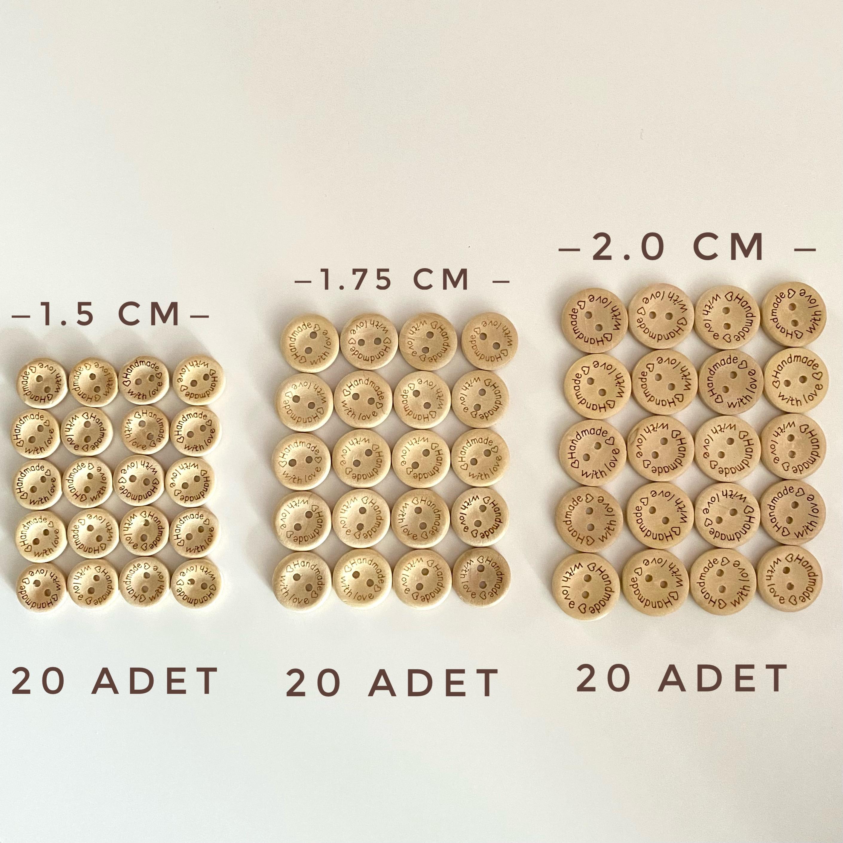 Ahşap Handmade Düğme 1.5 Cm / 1.75 Cm / 2 Cm 20' Şer Adet ( Toplam 60 Adet )
