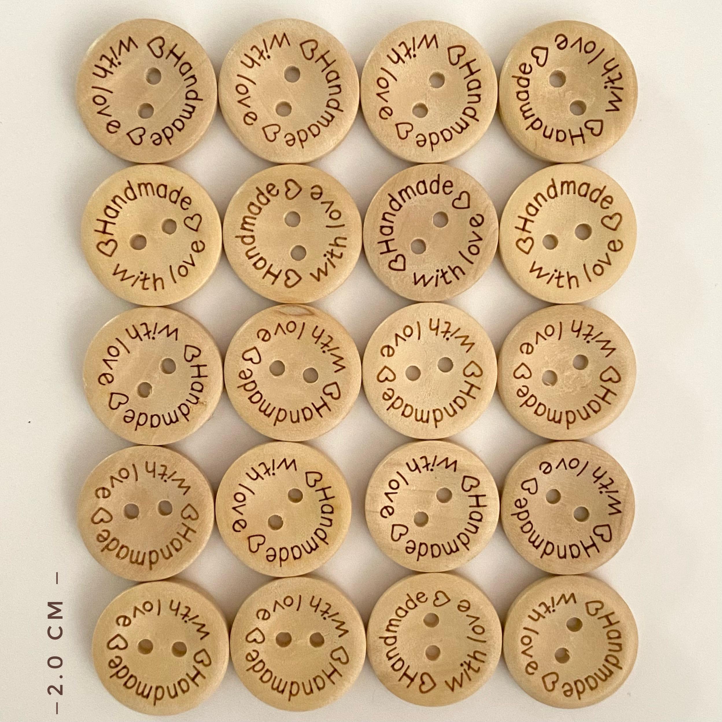 Bebek yeleklerinde, amigurumi çalışmalarınız da, örgülerinizi etiketleme de yada sadece düğme amaçlı kullanabileceiğiniz ahşap handmade düğme. Çapı 1,5 cm dir. Pakette 20 adet vardır.