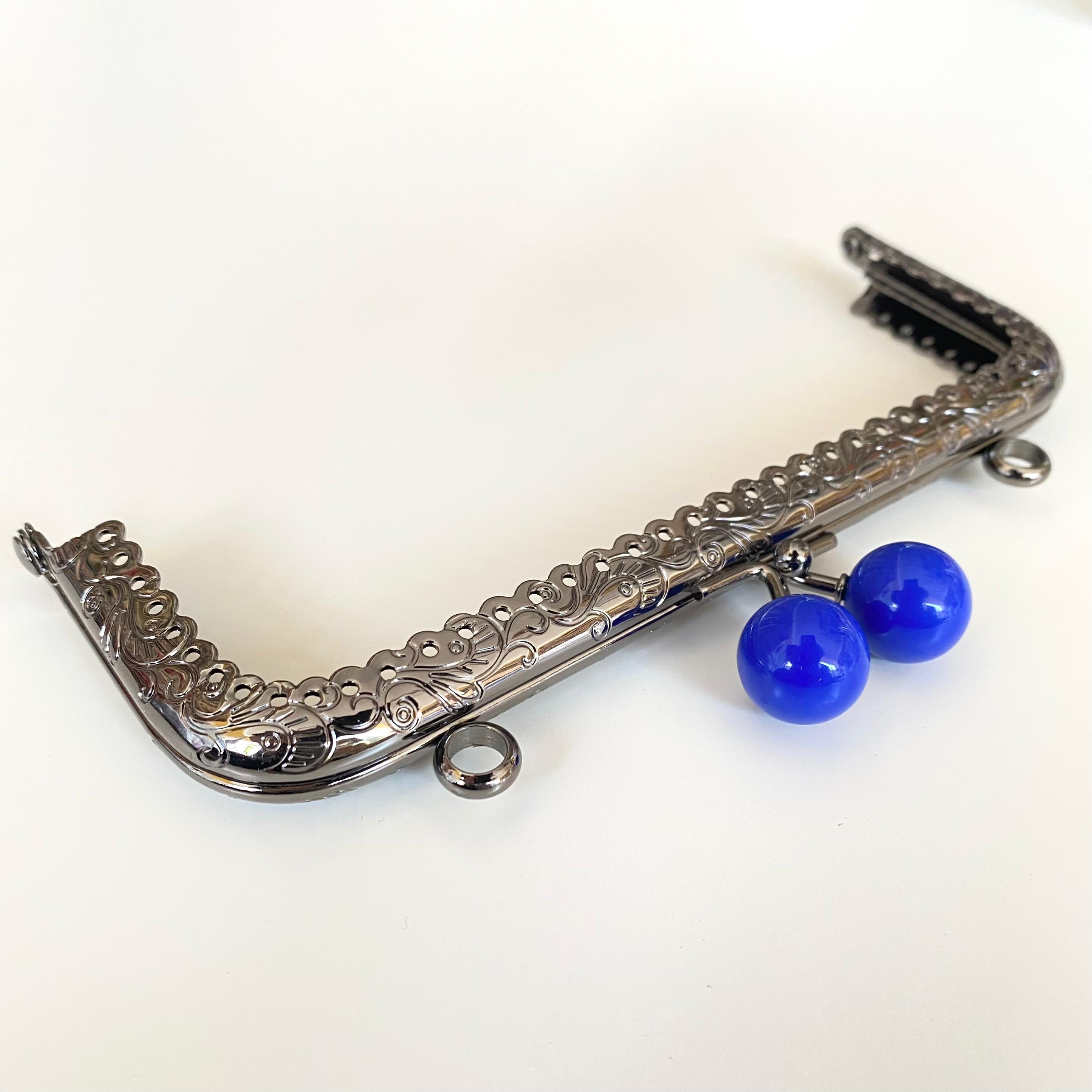 Çanta ve Cüzdan Klipsi İşlemeli Gri Renk Köşeli Model 15 Cm Mavi Başlıklı ( ASKILIKLI )